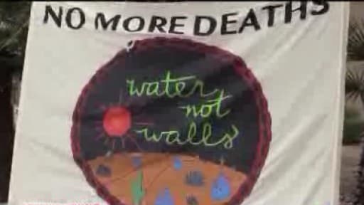 Nueve voluntarios de la organización “No más muertes” son acusados de haber puesto agua en el desierto para inmigrantes y las afueras de la corte federal en el centro de Tucson algunas personas esperan para brindar su apoyo a los imputados.