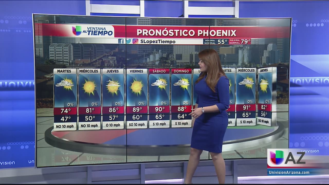 Para mañana martes se espera un aumento en las temperaturas con máximas de 74 grados en Phoenix, pero con probabilidades de lluvias en distintas regiones del estado.