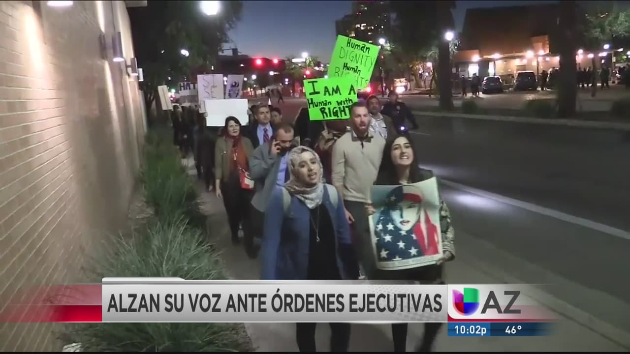 Latinos y musulmanes se manifestaron contra las órdenes ejecutivas de Donald Trump que conciernen a la inmigración.