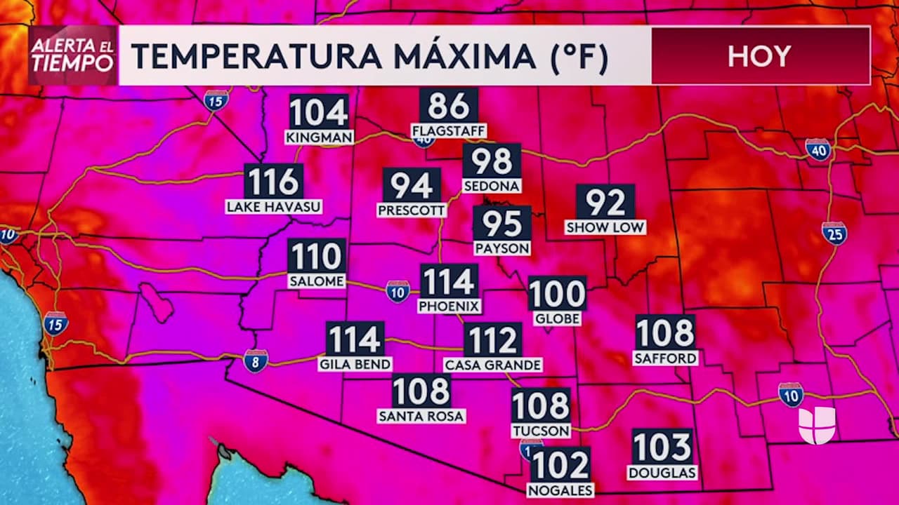Esta tarde se espera una máxima de 111 grados F en Phoenix y 108 en Tucson.