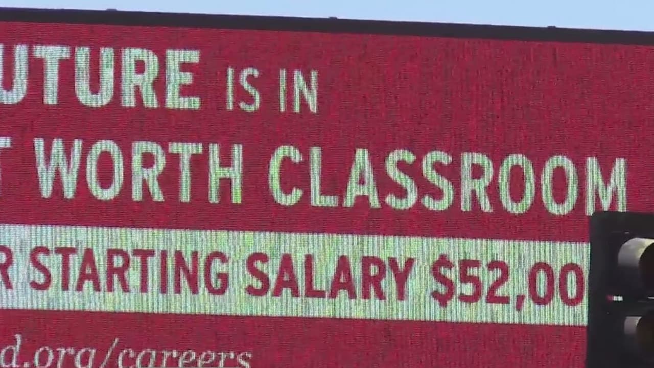 Con cinco vallas publicitarias desplegadas en el área metropolitana de Phoenix, el Distrito Escolar de Fort Worth en Texas promueve que sus salarios inician en 52,000 dólares, con esto buscan atraer a maestros de Arizona.
