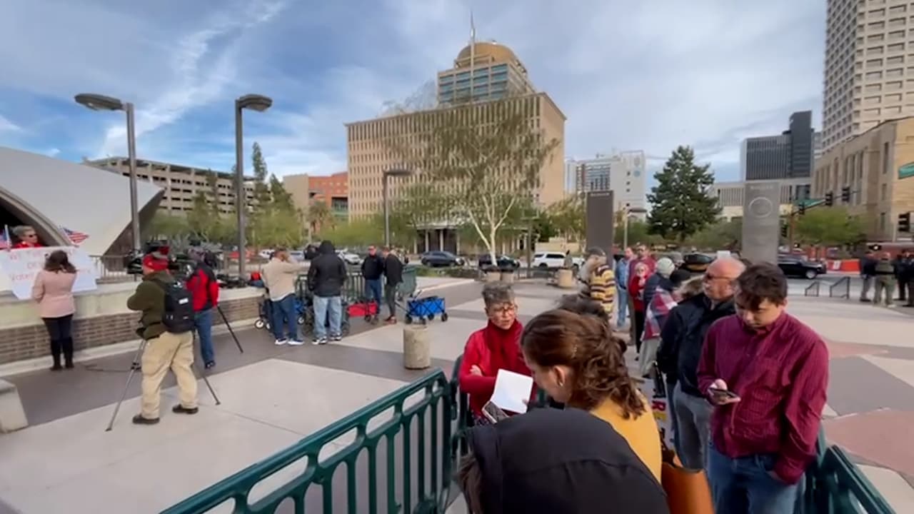 Decenas de republicanos se congregaron a las afueras de las oficinas del condado para protestar ante la certificación de las elecciones.