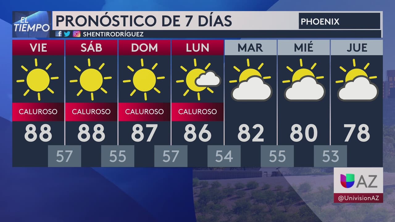 Las temperaturas máximas llegarán cerca del rango de los 90 grados, con cielos mayormente despejados.