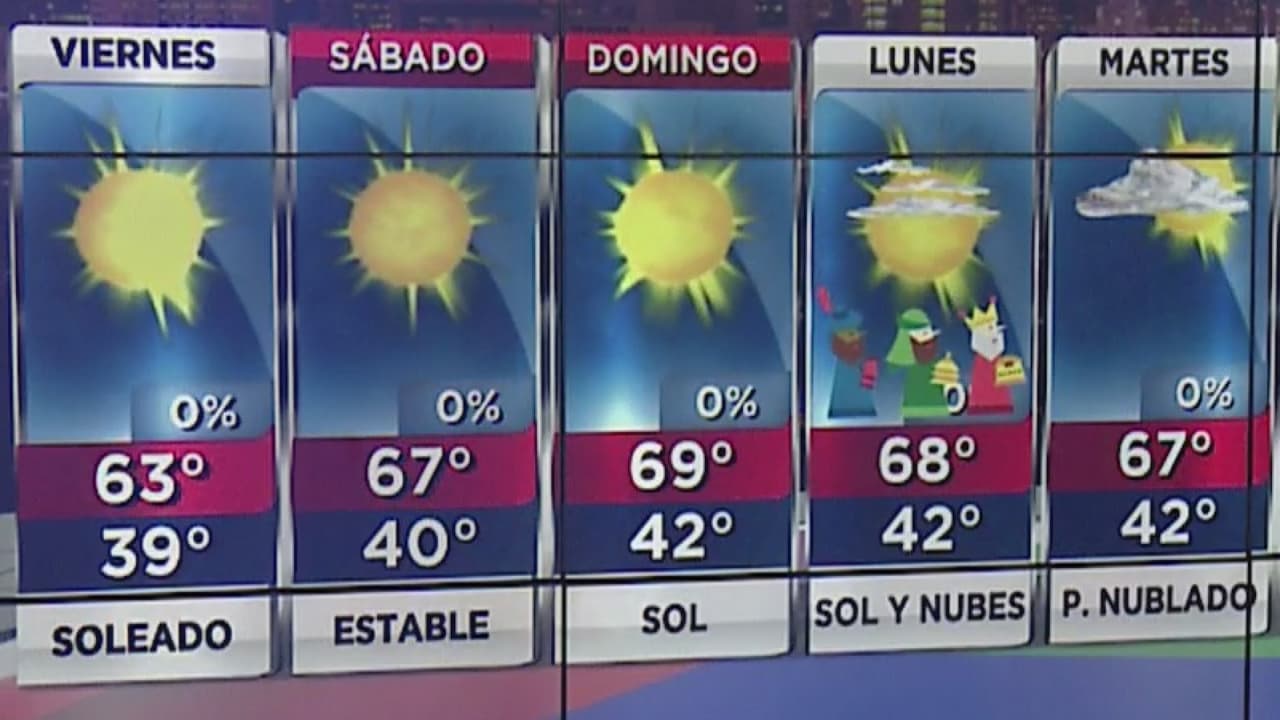 Se espera que las temperaturas máximas lleguen a los 63 grados, con condiciones estables y nublados ligeros.