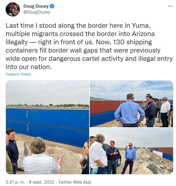 Y mientras se daba este anuncio oficial por parte de las autoridades fronterizas de Yuma, el gobernador Ducey declaraba el jueves, también en su cuenta de Twitter, que la última vez que había visitado ese punto, “varios inmigrantes cruzaron ilegalmente la frontera hacia Arizona, justo enfrente de nosotros.