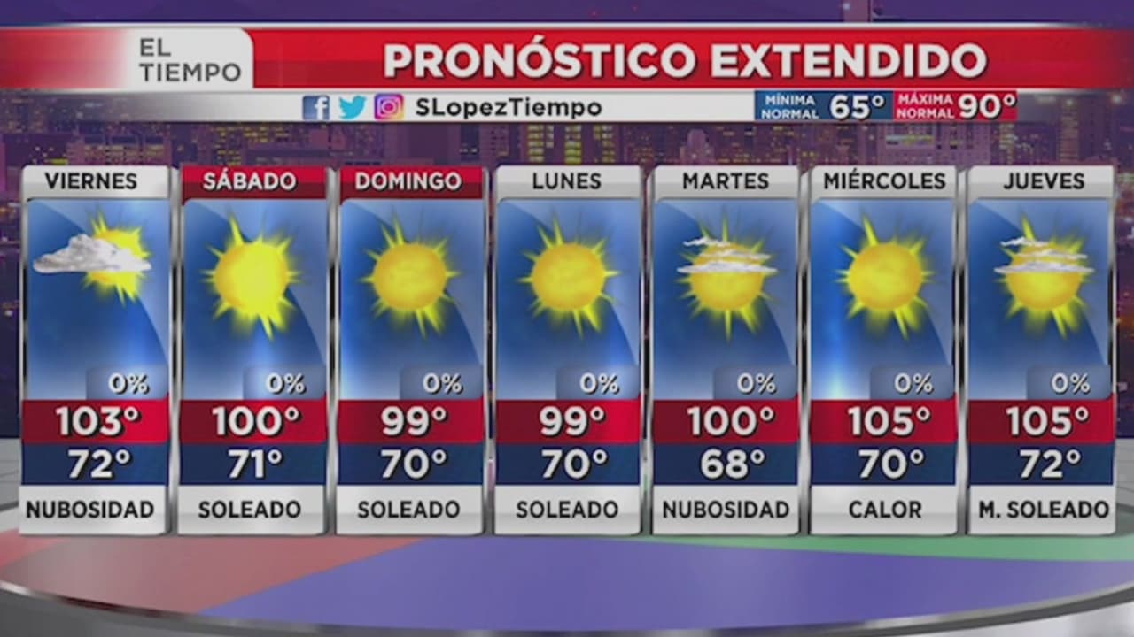 Las temperaturas máximas continuarán por arriba del rango de los 100 grados en Phoenix, con condiciones soleadas. Algunas partes del desierto estarán entre 100 y 102 grados este viernes (10 grados por encima de lo normal). ¡manténgase hidratado y evite el calor durante el día!
