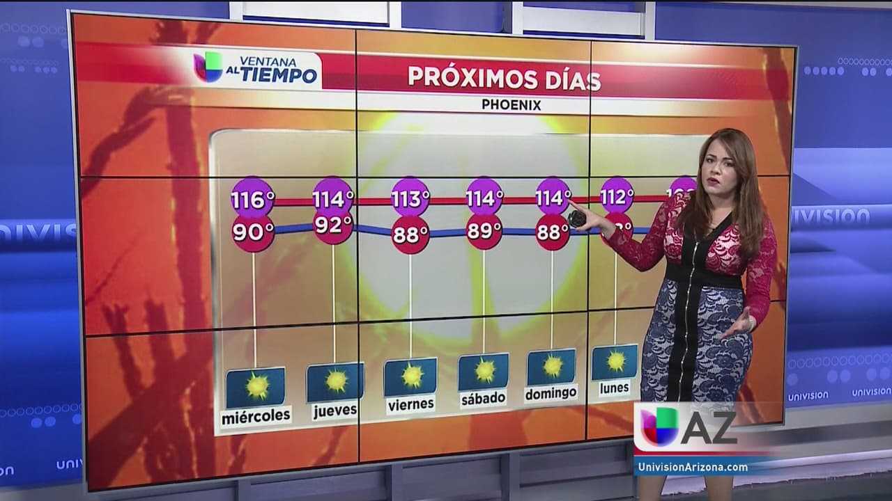 El termómetro alcanzó una máxima de 119 grados en Phoenix, se espera que el calor extremo continúe los próximos días. Recuerde mantenerse hidratado y protegerse de los rayos del sol.