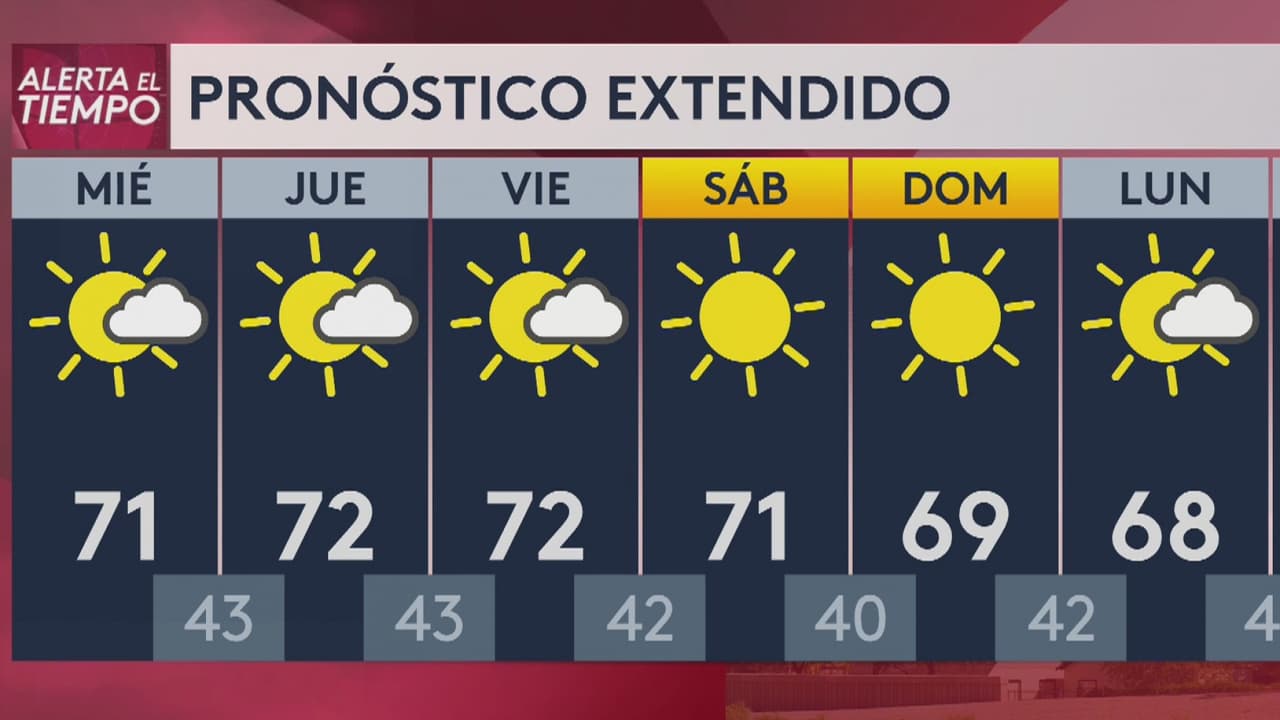 Continuarán las temperaturas por arriba de lo normal con condiciones soleadas. Se espera que este miércoles predominen las condiciones soleadas y el termómetro marcará temperaturas máximas de 73 grados.