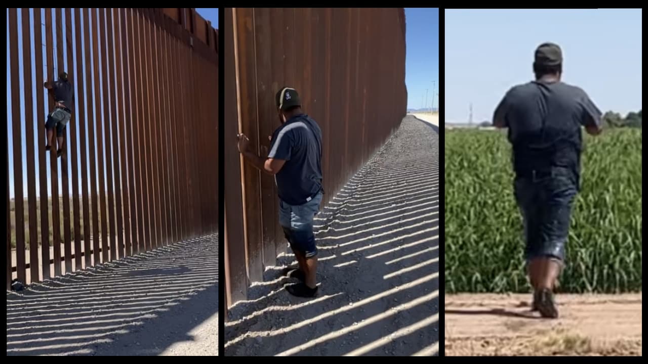 En la frontera de Yuma se observa un gran número de inmigrantes de varias nacionalidades que cruzan caminando por los espacios que no se construyeron del muro fronterizo, mientras otros como se observa en el video, prefieren evadir a las autoridades y saltan la valla por áreas más alejadas.