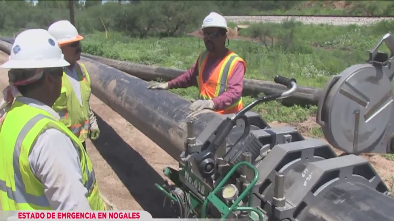 Autoridades estatales y federales trabajan para reparar una sección de un tubo de aguas negras, provenientes de México, que colapsó y que podría contaminar las aguas del río.