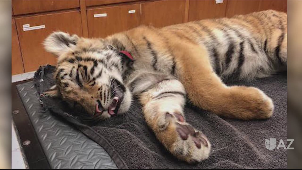 Agentes federales lograron el decomiso de un tigre cachorro, el cual estaba escondido dentro de una maleta. El tigre de entre 3 y 4 meses de edad ya fue entregado al zoológico local.