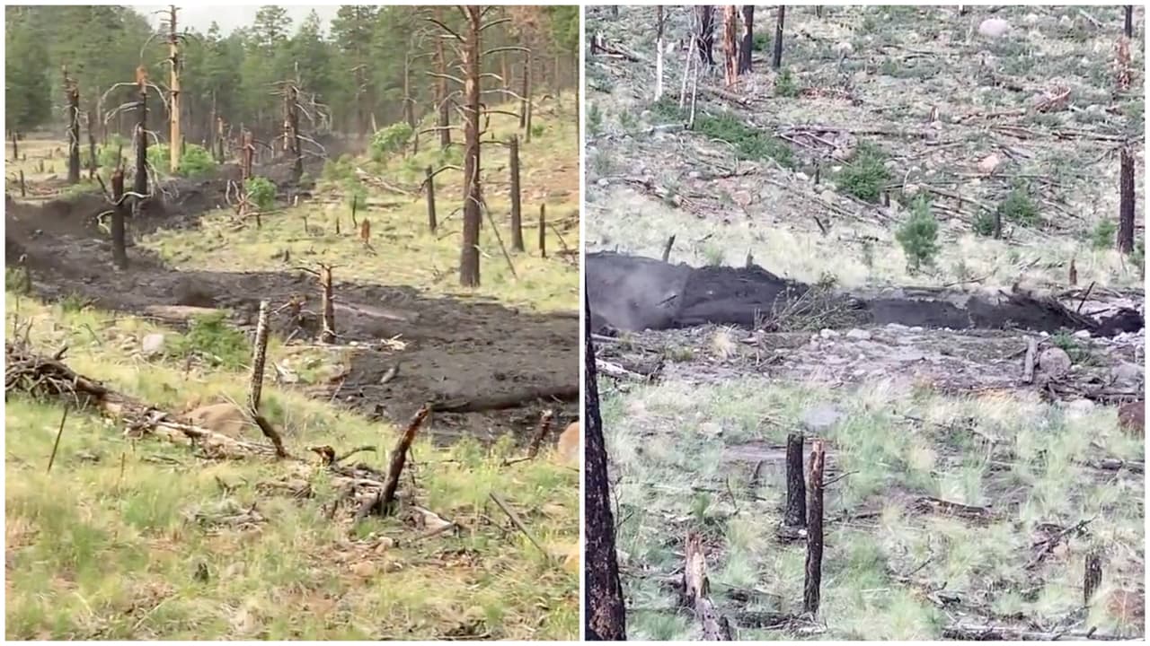 Un video publicado por el Departamento de Caza y Pesca muestra cuando el agua corre con las cenizas del incendio Pipeline, al norte de Arizona. "Nuestro oficial, Tim Holt, capturó este momento loco cuando el agua corría por la cicatriz del incendio en los Picos de San Francisco. Tim, que estaba en la montaña ayudando a hacer cumplir los cierres, dijo que fue "bastante intimidante" ver cómo sucedía este poderoso acto de la naturaleza".