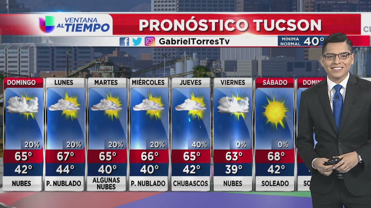 Se esperan temperaturas máximas de 65 grados con nublados. Para el inicio de semana se prevén posibilidades de lluvia.