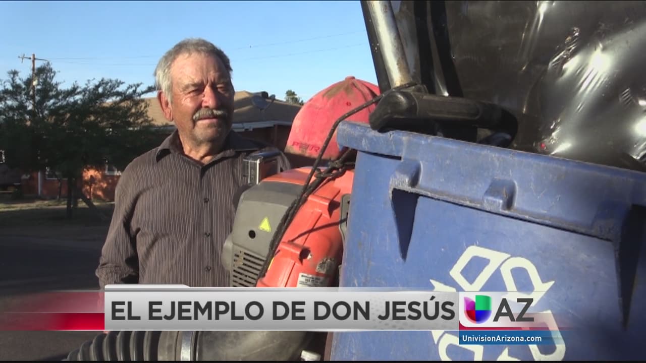 Este hombre de 77 años trabaja como ‘yardero’, caminando bajo el sol pidiendo trabajo en diversos vecindarios.