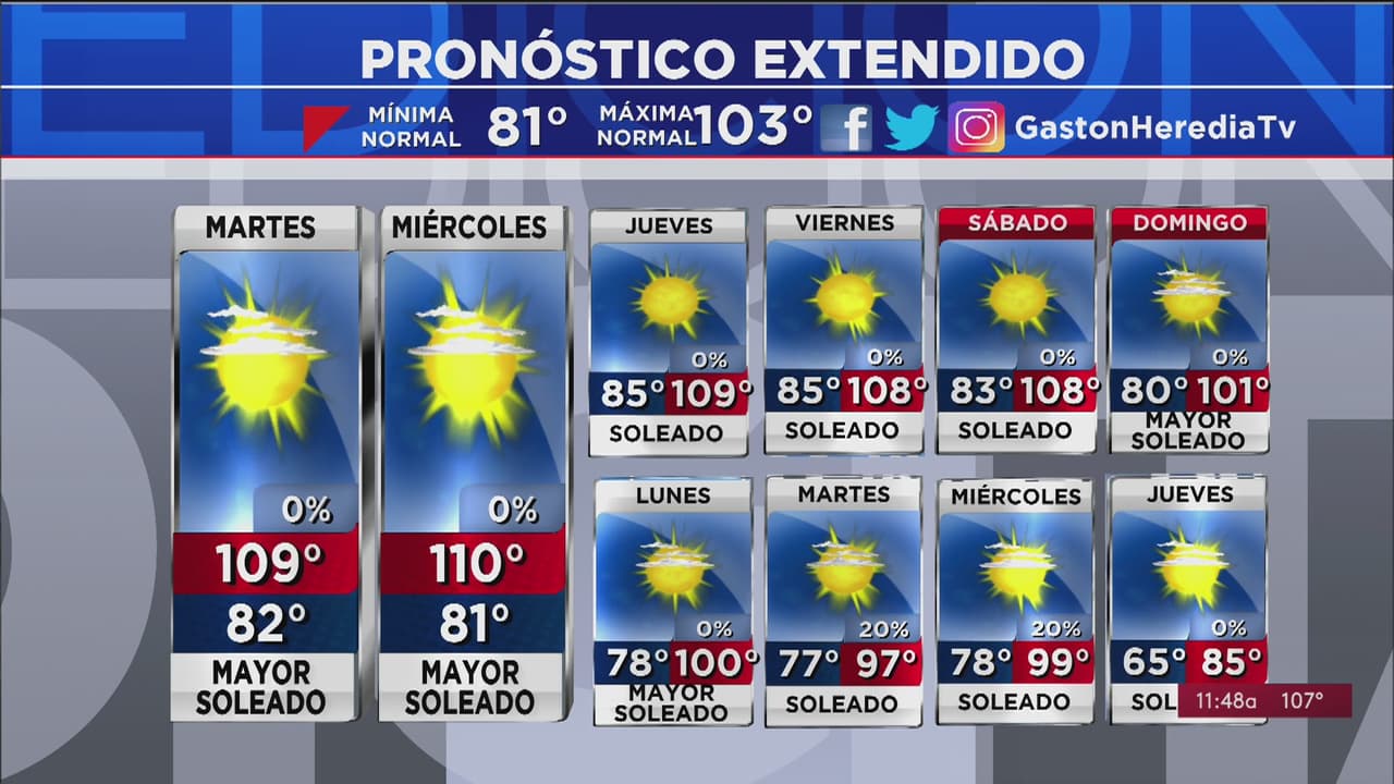 Se esperan temperaturas alrededor de los 106 grados Fahrenheit para este lunes y hasta mediados de semana.