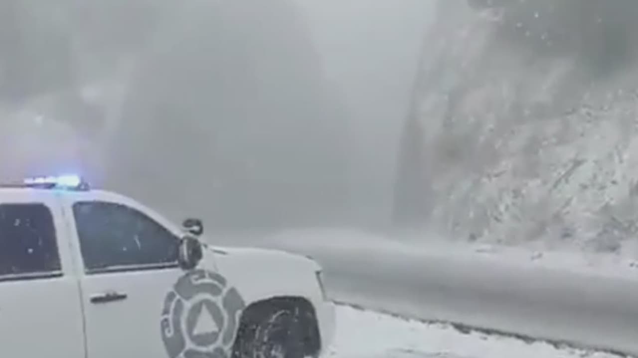 Autoridades analizan la situación del puerto de San Luis debido a las condiciones adversas en el tramo de la carretera Agua Prieta - Janos tras una fuerte nevada que se registró en Sonora y que llevó al cierre del camino para garantizar la seguridad.