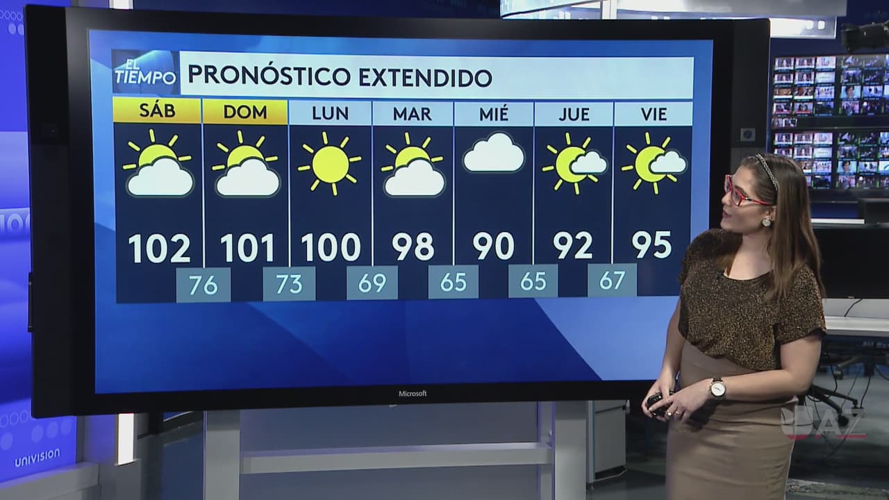Espera temperaturas máximas esta tarde alrededor de los 103 grados Fahrenheit con sensación seca y poco viento.