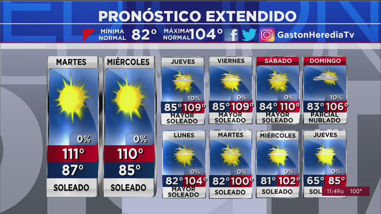 Espere temperaturas por arriba de los 100 grados sin posibilidad de precipitaciones y cielos totalmente despejados.