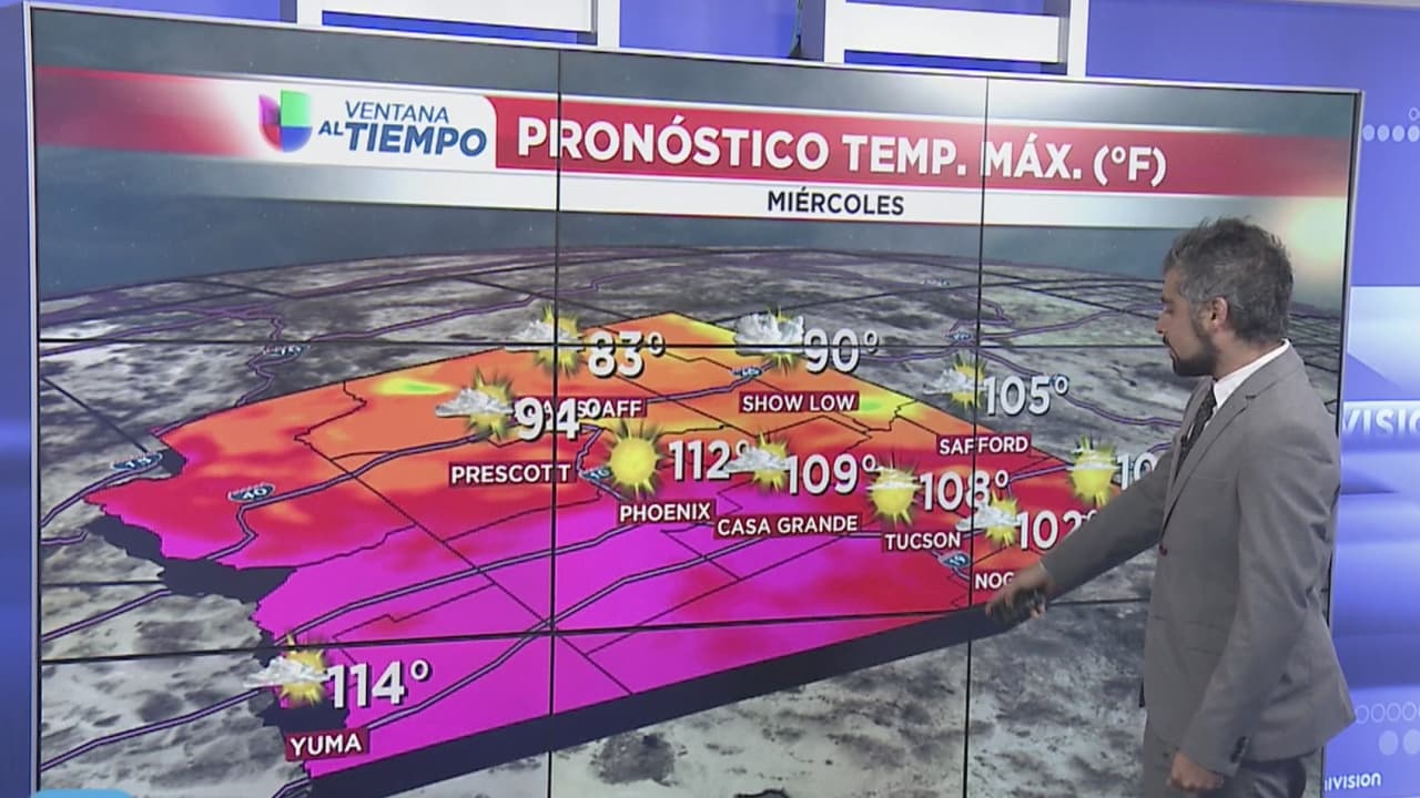 Mitad de semana sin posibilidad de lluvia, por la tarde se esperan temperaturas máximas de 112 grados Fahrenheit en Phoenix y 108 para Tucson. Evite actividades al aire libre.