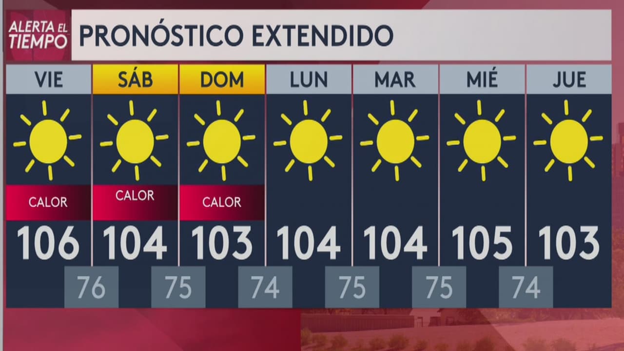 Espera temperaturas alrededor de los 105 grados Fahrenheit con cielos totalmente despejados y condiciones secas.