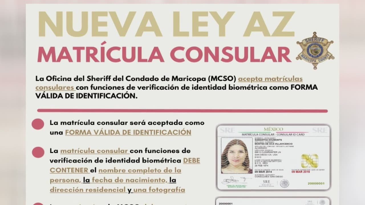 La Oficina del Sheriff del condado de Maricopa dio a conocer a través de sus redes sociales que la nueva versión de la Matrícula Consular funciona como identificación pero no como licencia de conducir.