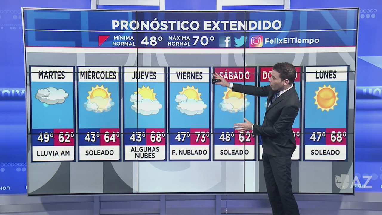 Espere aguaceros a partir de esta noche y temperaturas alrededor de los 63 grados Fahrenheit.