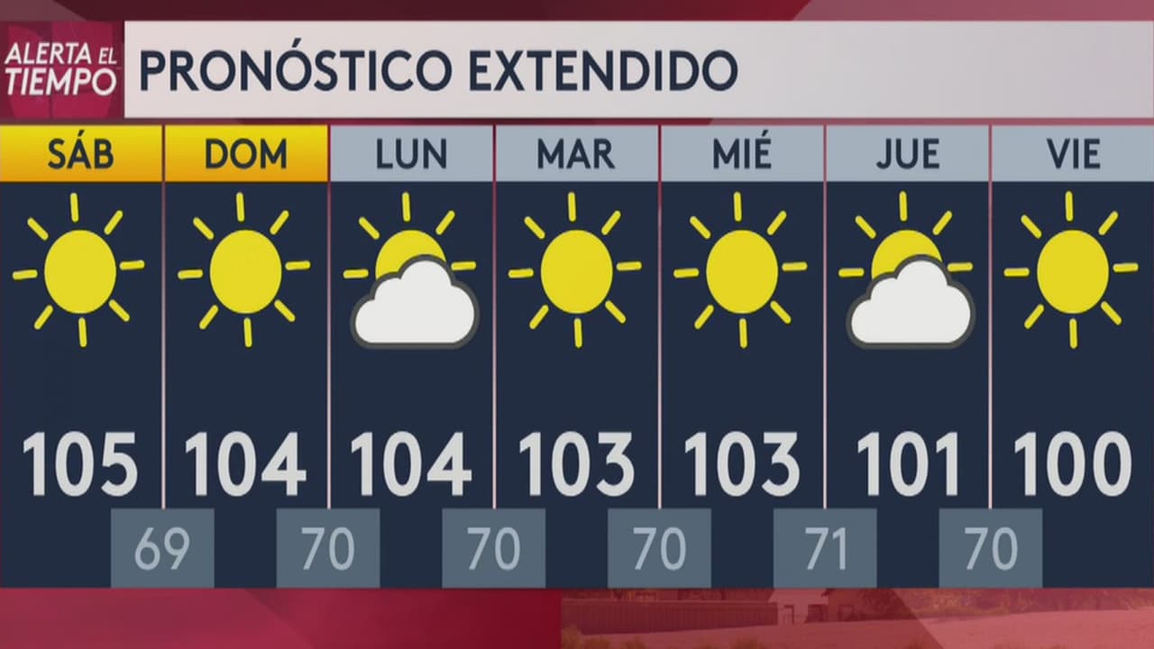 Espera temperaturas máximas alrededor de los 105 grados Fahrenheit con cielos totalmente despejados.