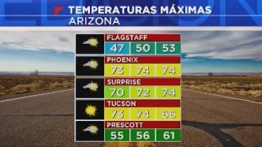 Un sistema frontal traerá lluvias ligeras a la región, principalmente para el área de Prescot, para Phoenix la luvia podría llegar hasta la noche, durante el día se esperan temperaturas máximas de 73 grados Fahrenheit.
