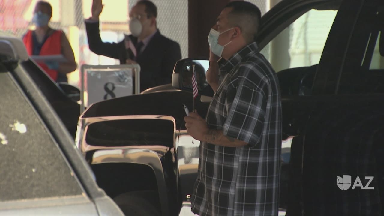Un grupo de personas acudieron a su ceremonia de juramentación para hacerse ciudadanos estadounidenses, pero esta vez la ceremonia se realizó en un estacionamiento, cada uno de los asistentes desde sus vehículos y con estrictas medidas sanitarias.