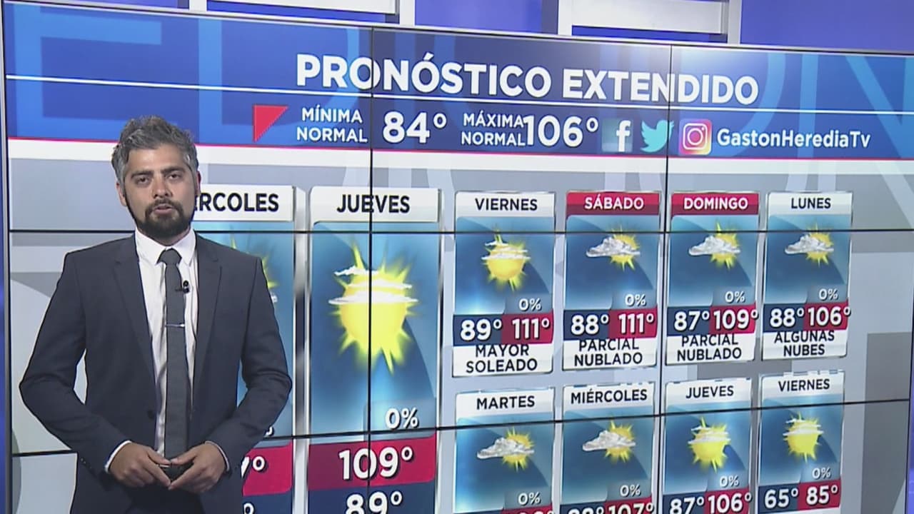 Espere precipitaciones y fuertes vientos en el transcurso de la semana. Mientras tanto, seguiremos registrando temperaturas superiores a los 105 grados.