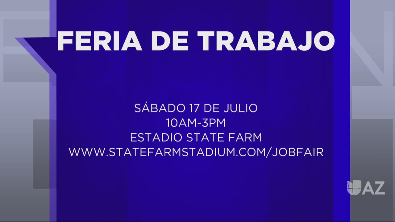 Este sábado 17 de julio diversas empresas ofrecen alrededor de 600 puestos de trabajo. Para más información visite www.statefarmstadium.com/jobfair.