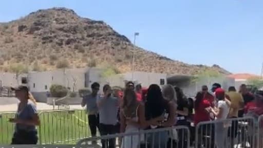 Ni las altas temperaturas ni la pandemia del coronavirus evitaron que cientos de personas desde temprano llegaran a las instalaciones de la iglesia Dream City en Phoenix para ver al presidente Donald Trump, quien se espera que llegue alrededor de las 3:30 p.m.
