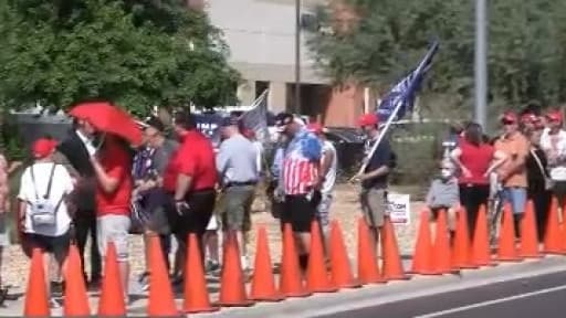 Decenas de simpatizantes hacen fila para poder ingresar al evento ““Make America Great Again” y poder ver al vicepresidente Mike Pence, quien visita Peoria como parte de la campaña. Se espera que dé su discurso hoy las 2:30 de la tarde.