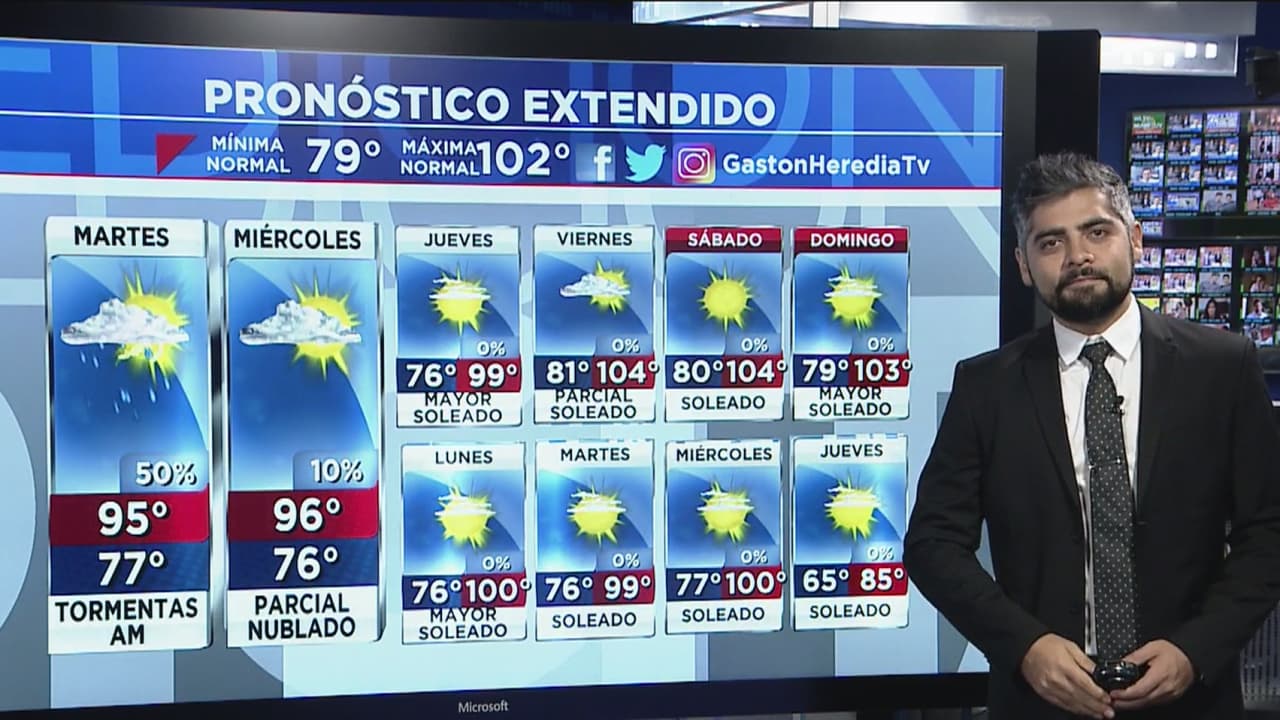 Espere la presencia de tormentas ligeras y temperaturas máximas alrededor de los 98 grados Fahrenheit.