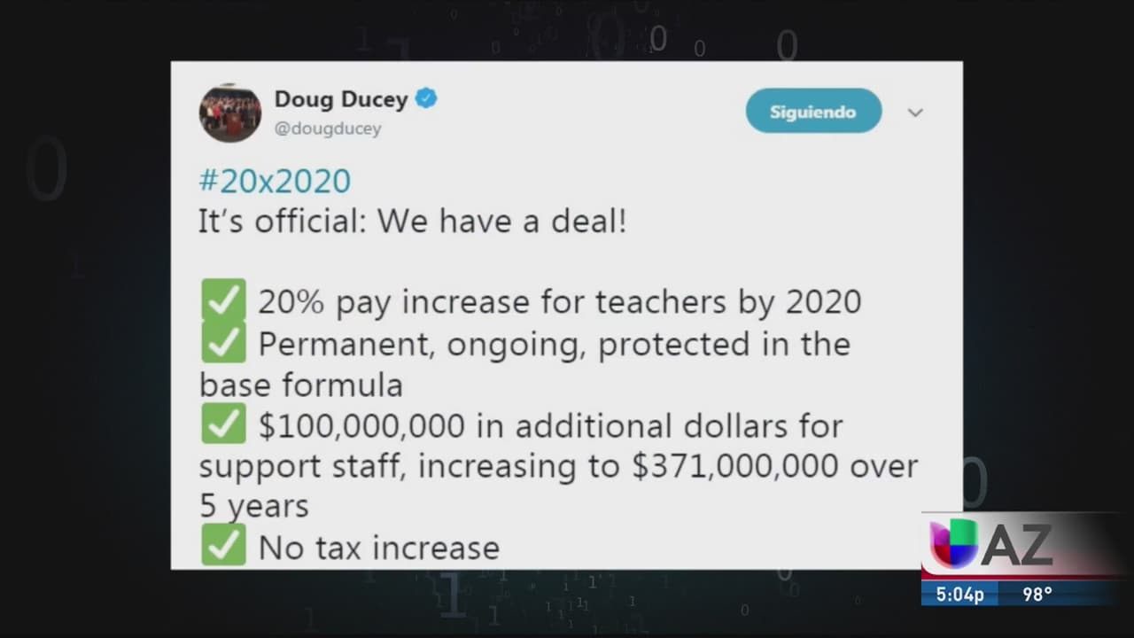 El gobernador Doug Ducey afirmó que los líderes de ambas cámaras del estado habían llegado a un acuerdo de aumentar el salario de los maestros un 20% para 2020.