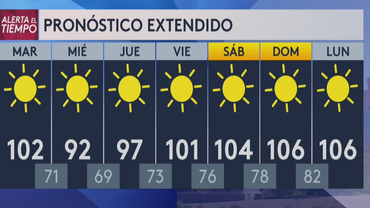 El área metropolitana de Phoenix tendrá temperaturas máximas cerca de los 101 grados Fahrenheit y mínimas de 70 grados. Además, se espera que esta tarde hará brisa, especialmente al oeste de la ciudad.