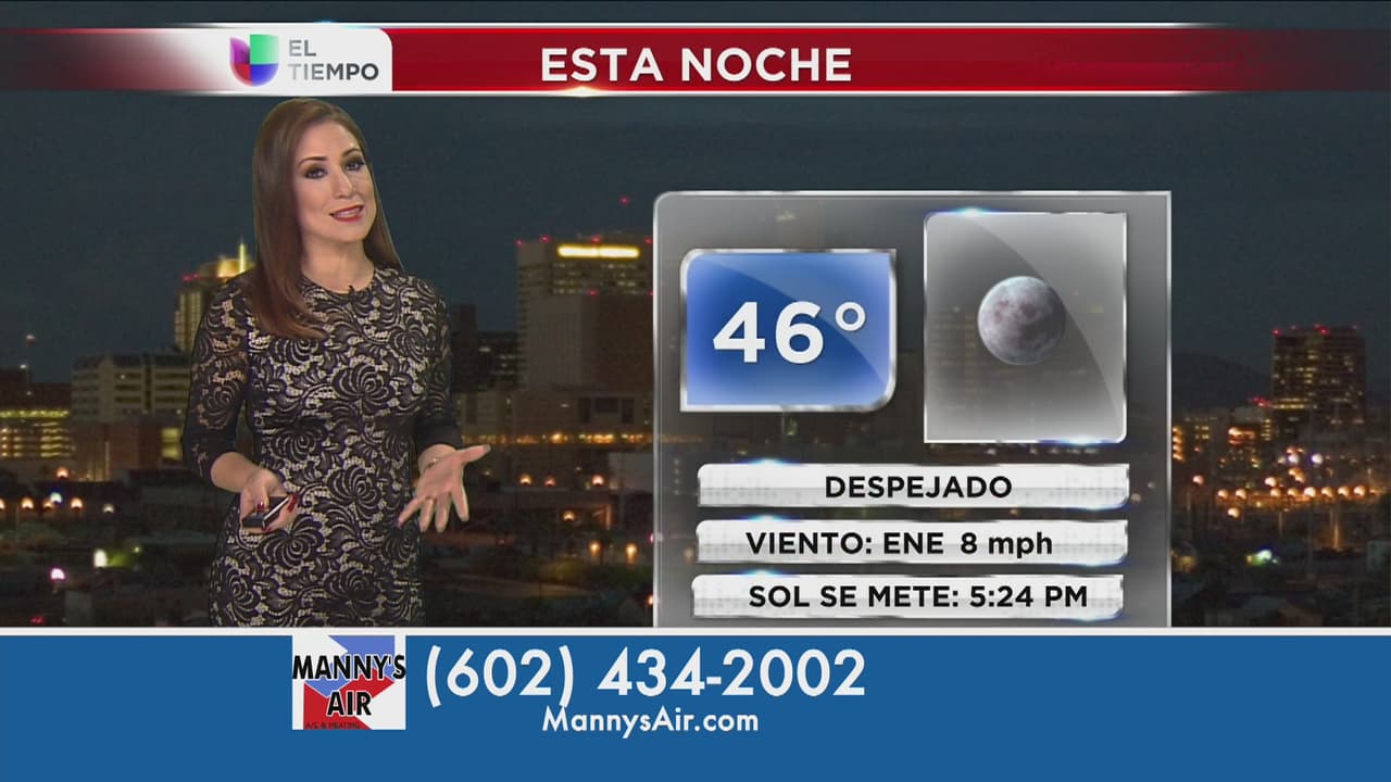 Un día con temperaturas agradables y cielos despejados por la noche se espera que el termómetro descienda a los 46 grados.