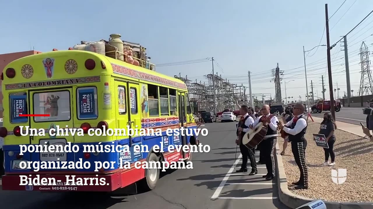 La campaña de Joe Biden recibió con mariachis y una chiva colombiana a quienes acuden a la votación anticipada en el condado Maricopa, en Arizona, donde una fila de carros se forma cada día para depositar su boleta.