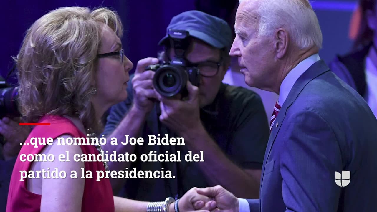 La excongresista de Estados Unidos, Gabrielle Giffords, recordada por ser víctima de un atentado en el que por poco pierde la vida hace 9 años, cerca de Tucson, se unió a otras personas a quienes la violencia armada les ha cambiado la vida durante la tercera jornada de la Convención Nacional Demócrata que nominará esta noche a Joe Biden como el candidato oficial del partido a la presidencia.