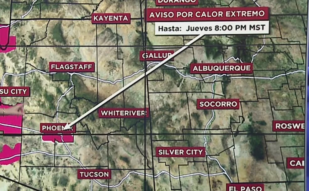 Las autoridades han emitido un aviso por calor extremo en el condado de Maricopa, la ciudad de Phoenix y la ciudad de Mesa que estará activo hasta las 8:00 p.m. de este jueves.