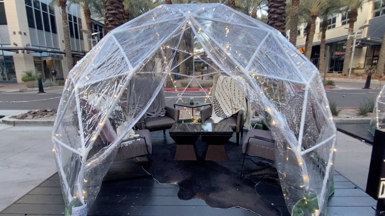 El restaurante Culinary Dropout colocó unas cúpulas o domos transparentes con capacidad de dos a seis personas para disfrutar de una rica cena o comida con los amigos respetando la sana distancia y protegiendo a sus clientes del covid-19. Se espera que estas burbujas estén en Scottsdale hasta la primavera de 2021.