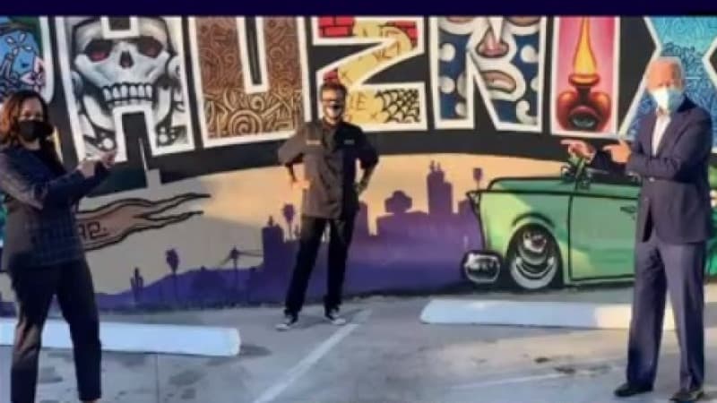 Entre comida mexicana y aguas frescas, Joe Biden y Kamala Harris saludan a sus simpatizantes en Arizona
