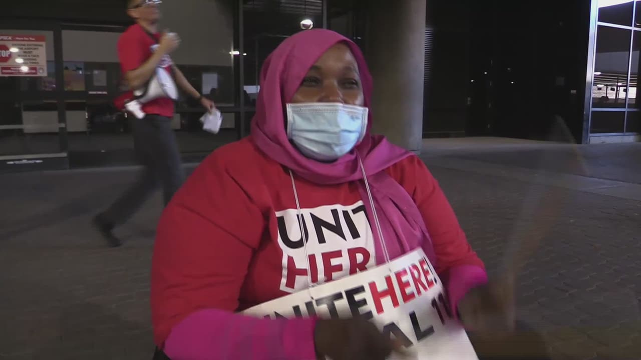 “Estamos ganando $13 la hora y no es justo”: empleados de HMS Host protestan en el aeropuerto internacional Phoenix Sky Harbor