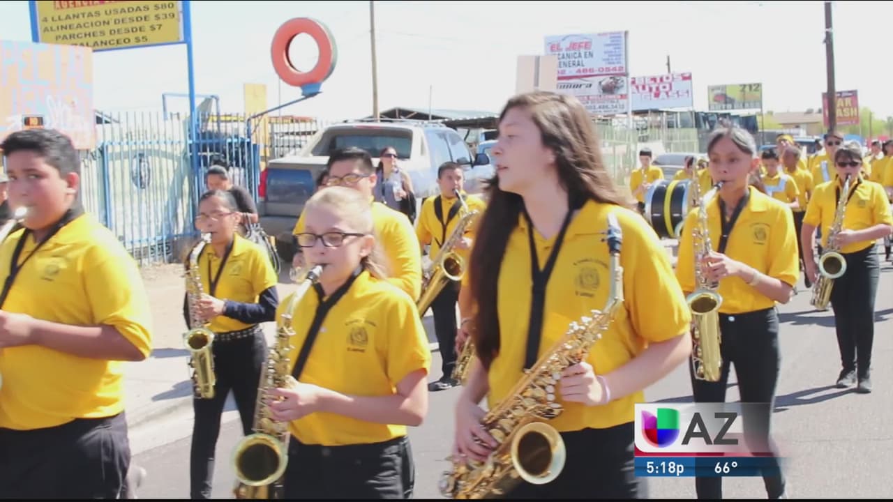 Estudiantes del Distrito Escolar Roosevelt participaron en un desfile y festividades para honrar el líder de derecho civil y el activista de trabajo Cesar Chavez.