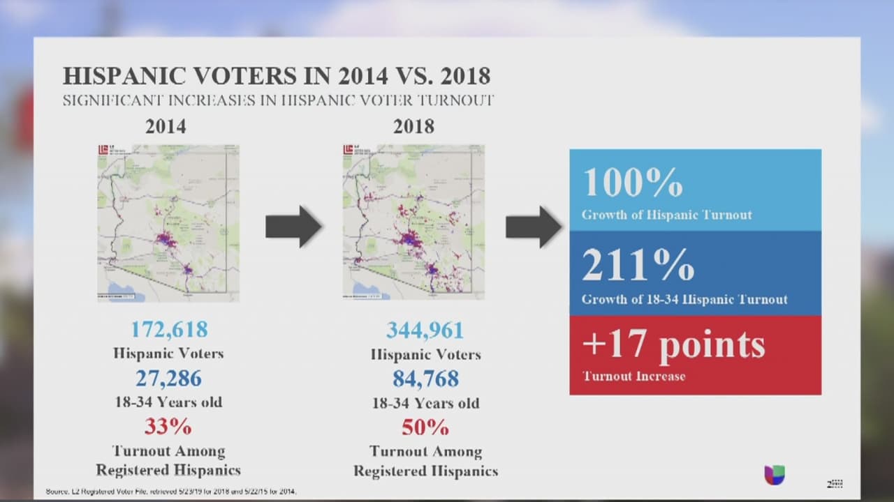 En las elecciones de medio término en 2018 se registró un crecimiento de la participación hispana en Arizona. Se espera que, en 2020, los hispanos que viven en Arizona sean más de la mitad del total de votantes registrados.