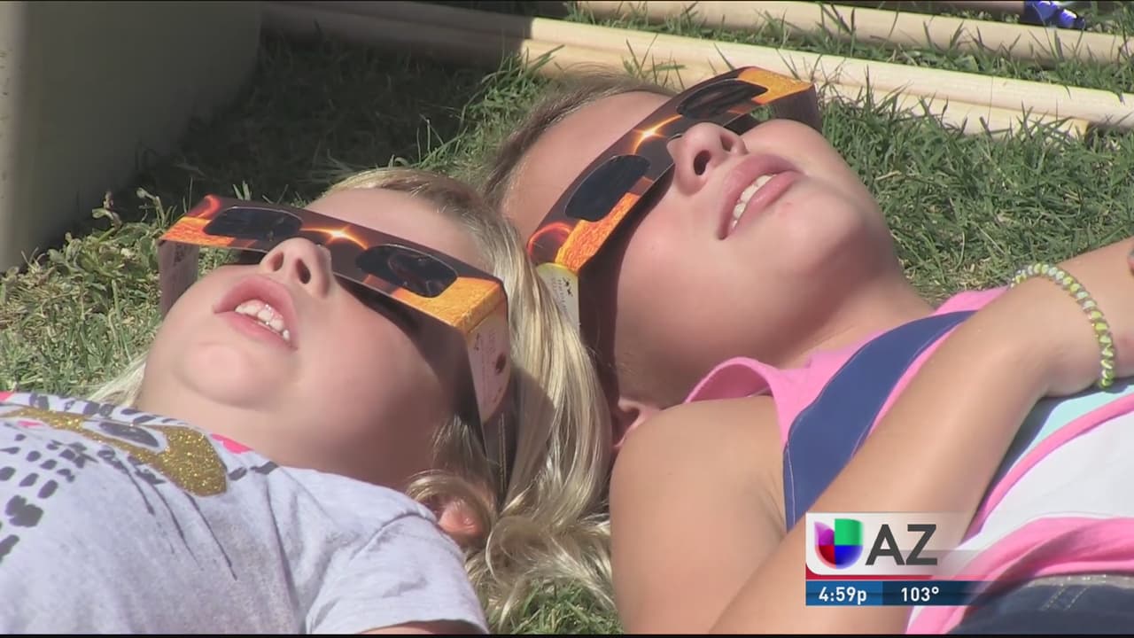 Más de 3,000 personas se dieron cita en la Universidad de Arizona para presenciar el eclipse solar, a través de telescopios y lentes especiales.