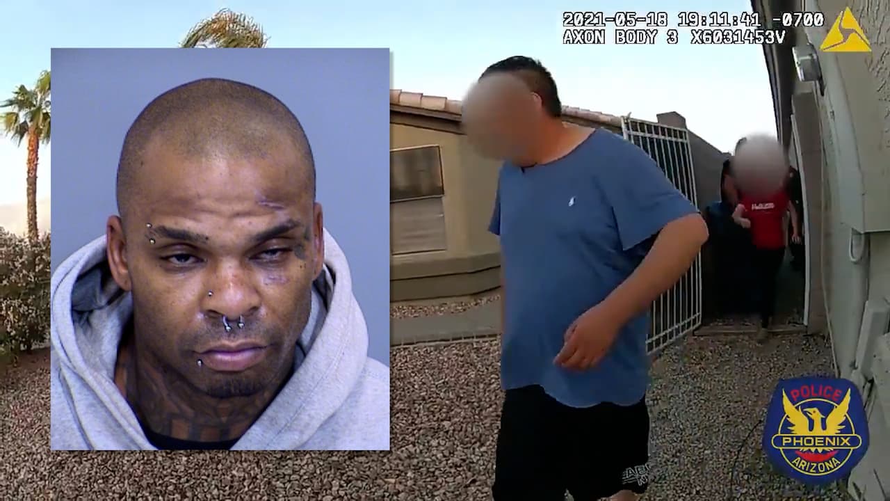 Un sospechoso con órdenes de arresto pendientes irrumpió en la casa de una familia en Phoenix. Desde fuera del hogar los oficiales pudieron escuchar a alguien gritar pidiendo ayuda. Los hechos quedaron grabados en la cámara corporal de un oficial.