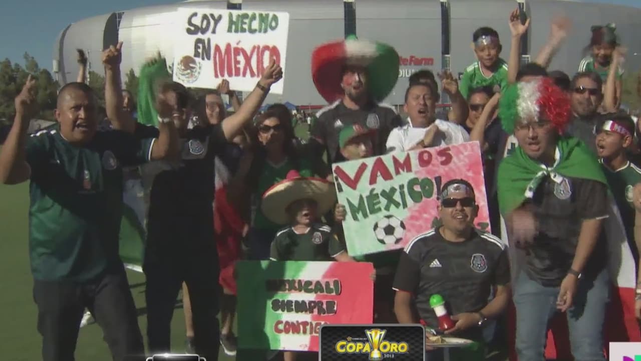 Fanáticos celebran el triunfo de la selección mexicana frente a Haití