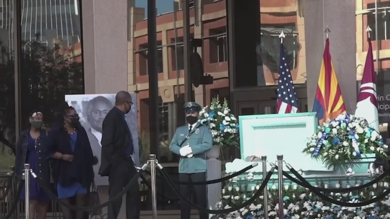La Policía y el FBI buscan a los responsables de enviar comentarios racistas y ofensivos durante los servicios fúnebres de Goode. El discurso de la alcaldesa Kate Gallego fue interrumpido con insultos y mensajes racistas.