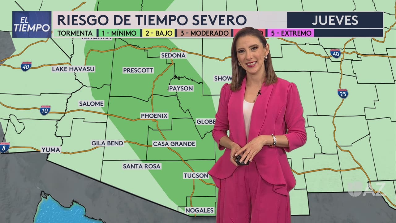 Hay riesgo por tiempo severo nivel 1 para las áreas de Sedona, Prescott, Pima y Pinal, por lo que se pueden esperar lluvias y vientos fuertes, así como posibles relámpagos para este jueves 8 de agosto.